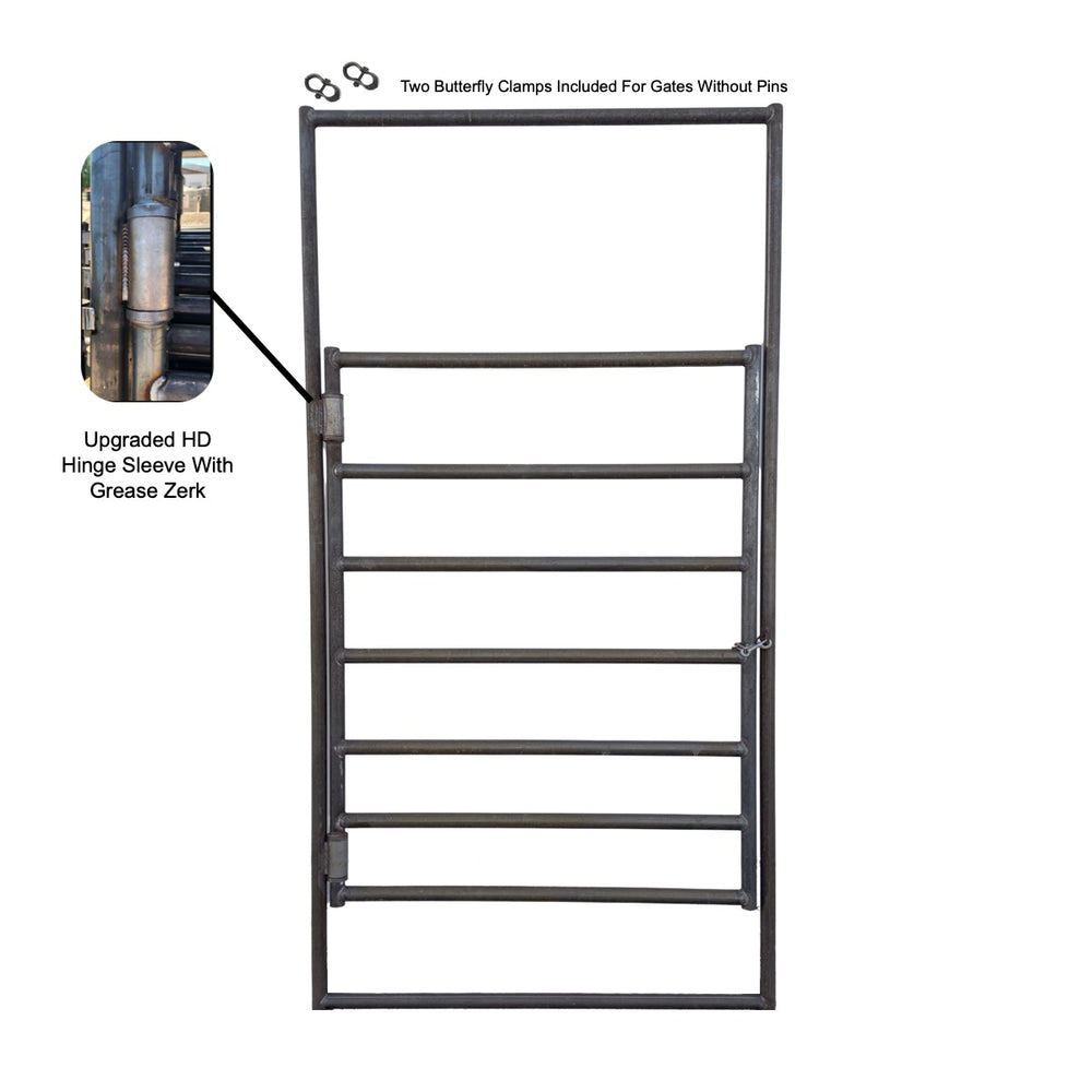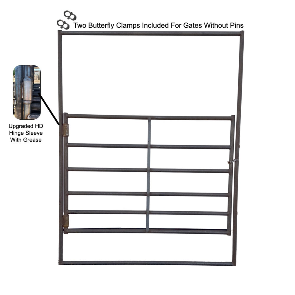 For easy installation, bow gates without connecting pins include two butterfly clamps, allowing you to securely mount the gate to your existing panels. Designed to withstand daily use in demanding environments, these gates are a reliable choice for cattle, horses, goats, and other livestock.